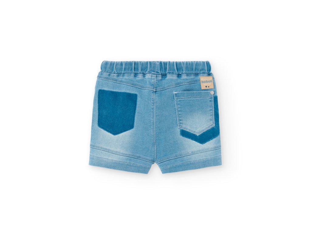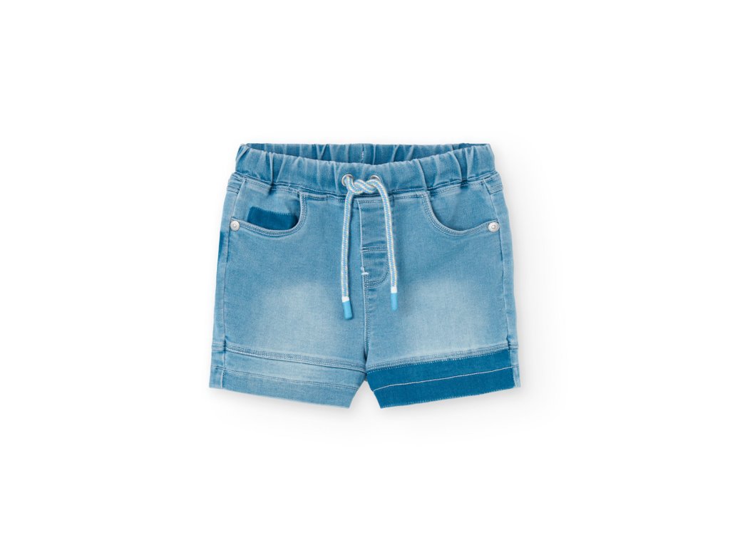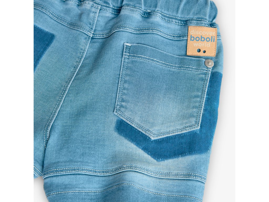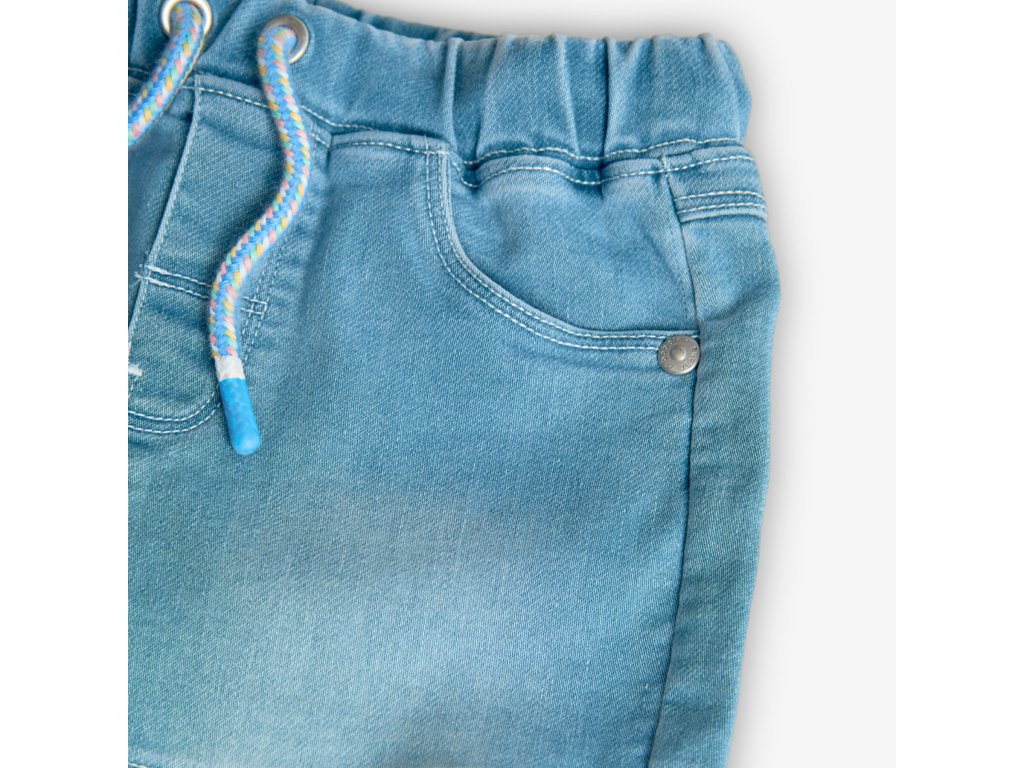 Džínové kraťasy s vysokým podílem bavlny, pěkně pruží, netlačí. V pase široká guma, tkanička pro stažení. Vpředu dvě kapsy,vzadu dvě kapsy. Kombinace světlé a tmavší džínoviny tak dělají kraťasy nevšední a zajímavé.