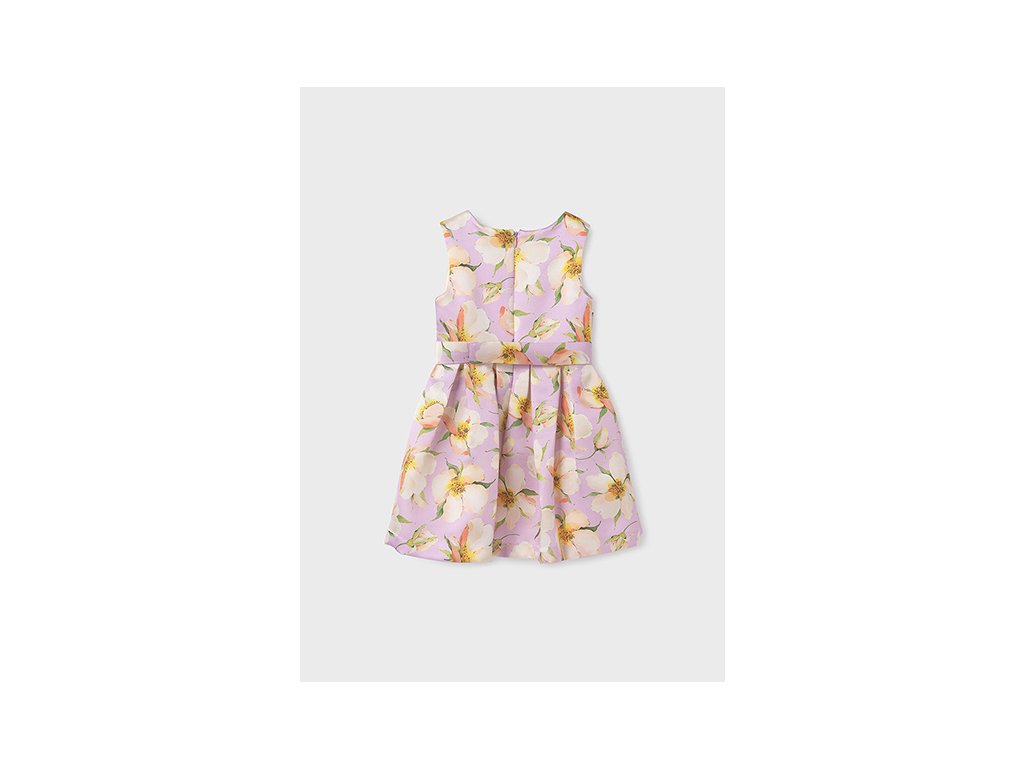 Luxusní šaty lila barvy s jemnými tvary květin. Vzadu zapínání na zip Podšívka - bavlna, nylon, pásek s kytičkou - lze oddělat. Značka : Abel&Lula