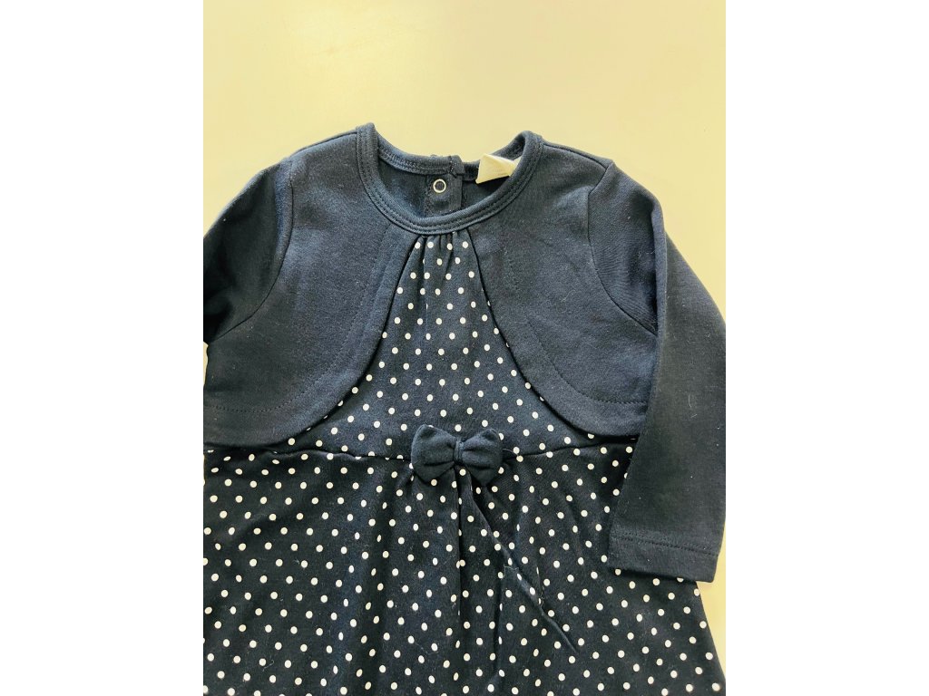 Bavlněné tmavě modré šaty s bílými puntíky, jsou praktické na každodenní nošení nebo určeny i ke slavnostní příležitosti. Oblékají se přes hlavu, vzadu mají zapínání na čtyři patenty. Vpředu našité bolerko, které dodává šatům ten dokonalý vzhled.