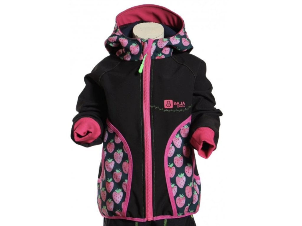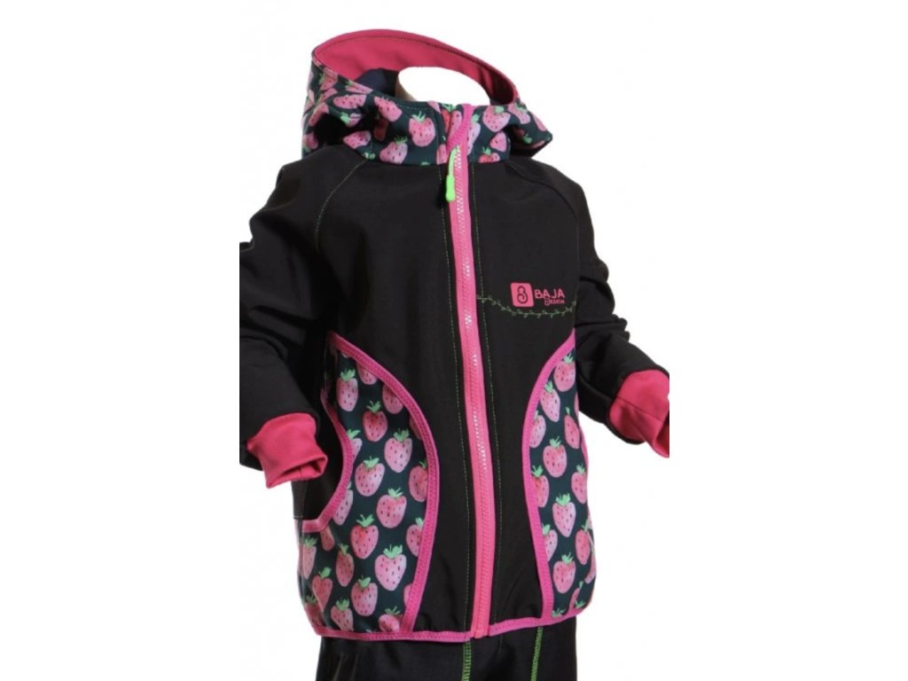 Softshellová bunda černá, jahody, dívka