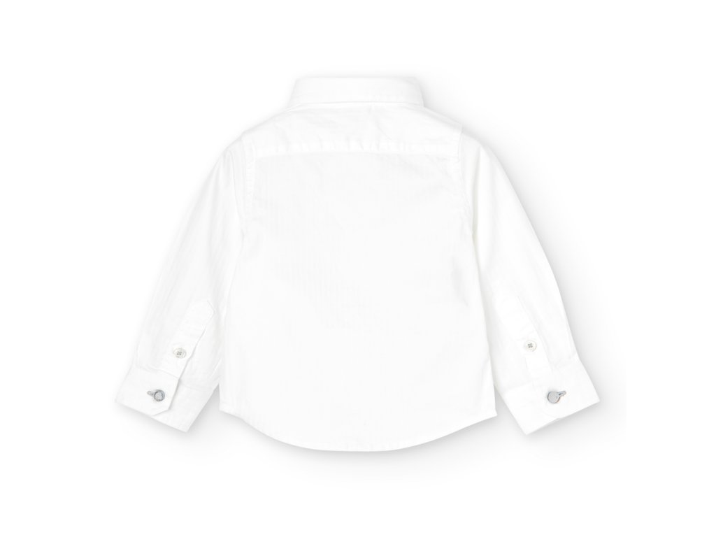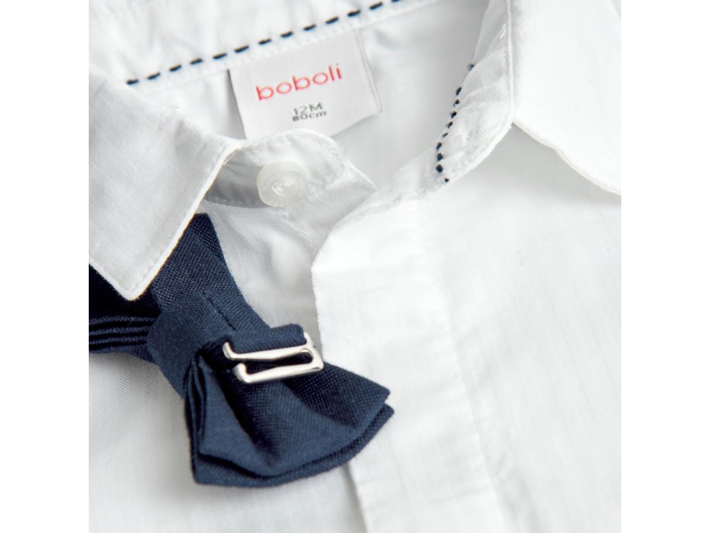 Společenská bílá košile s motýlkem ( dá se sundat), dlouhý rukáv. Zapínání na knoflíčky.