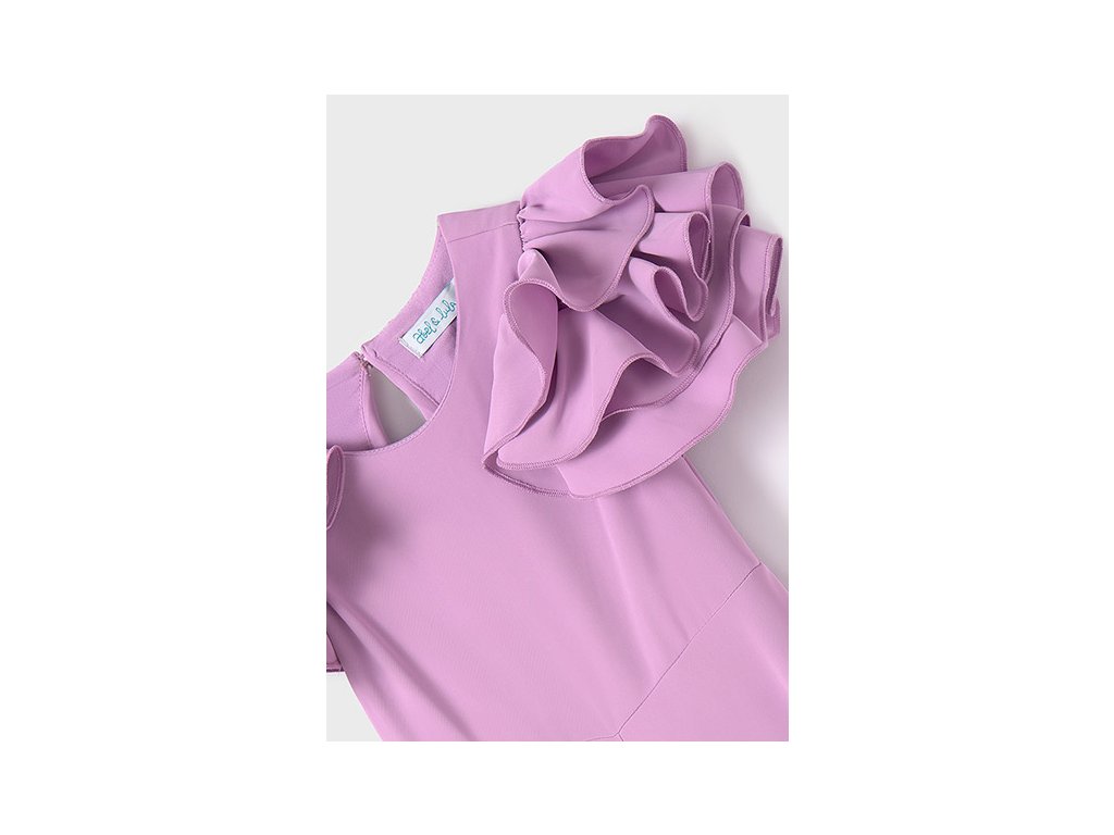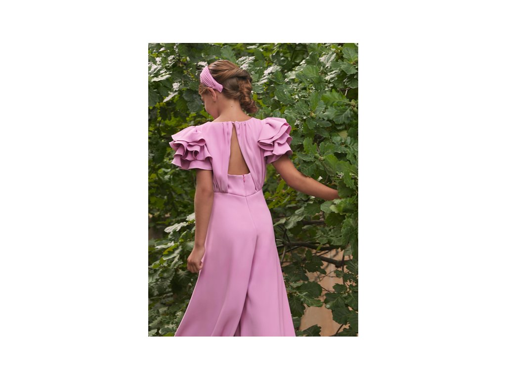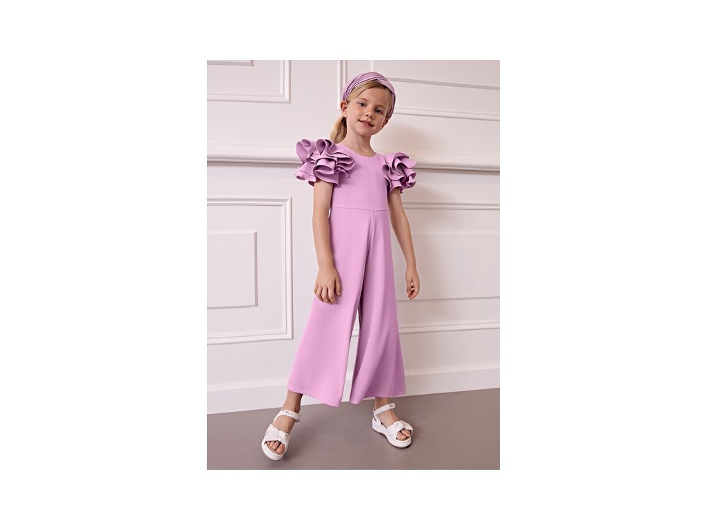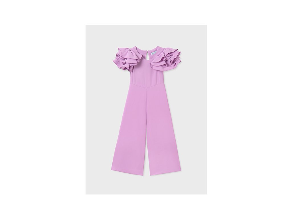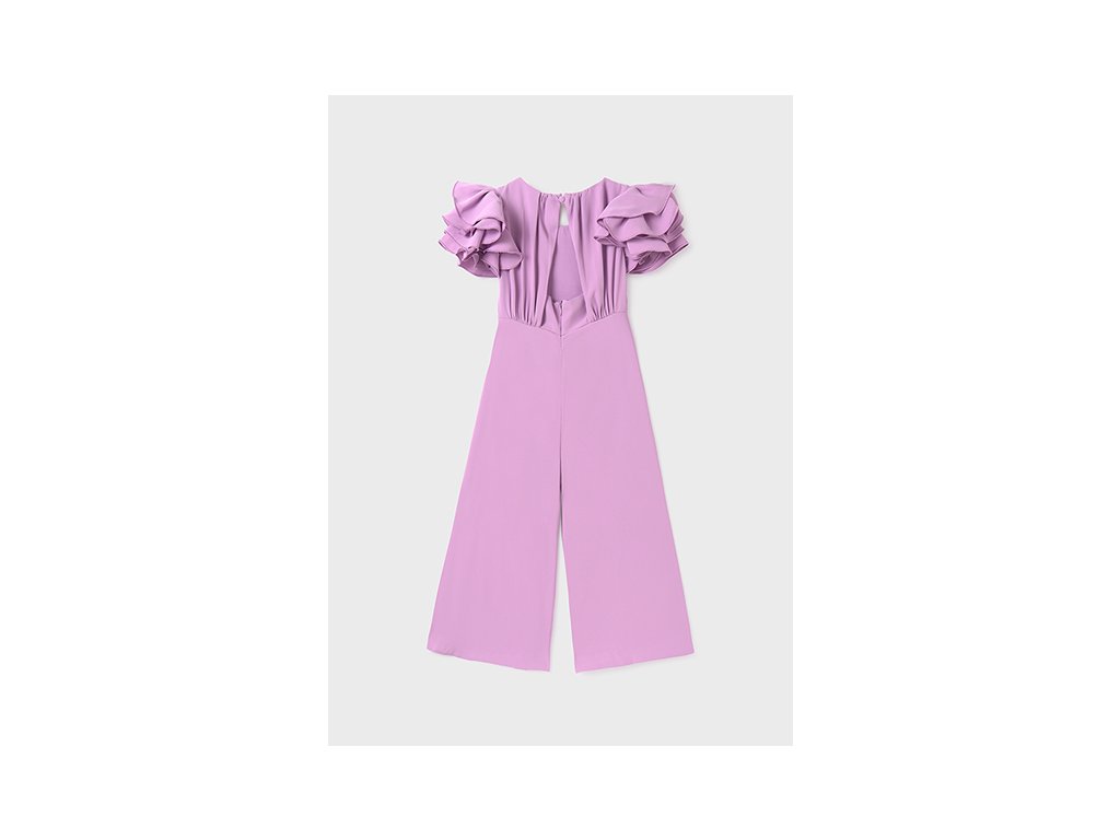 Luxusní společenský overal lila barvy. Bez rukávů, široké nohavice, zapínání na zip.