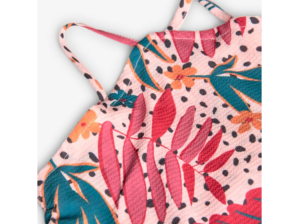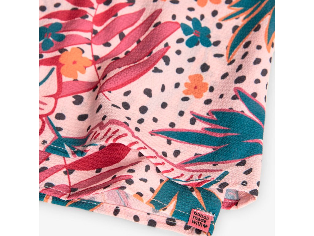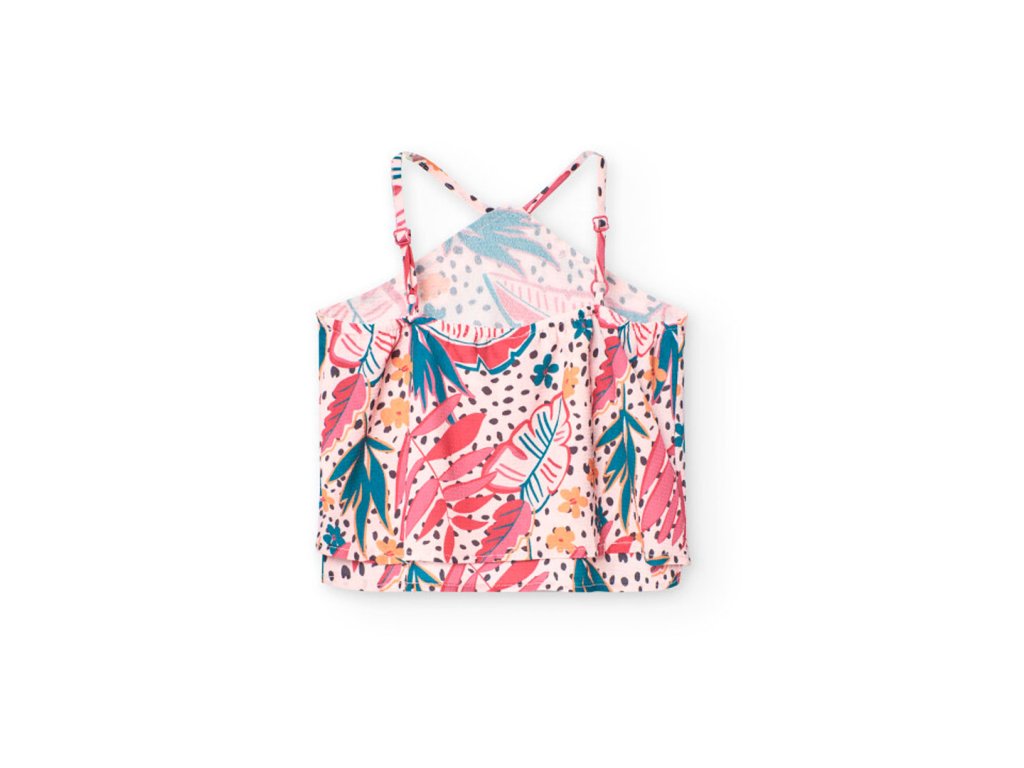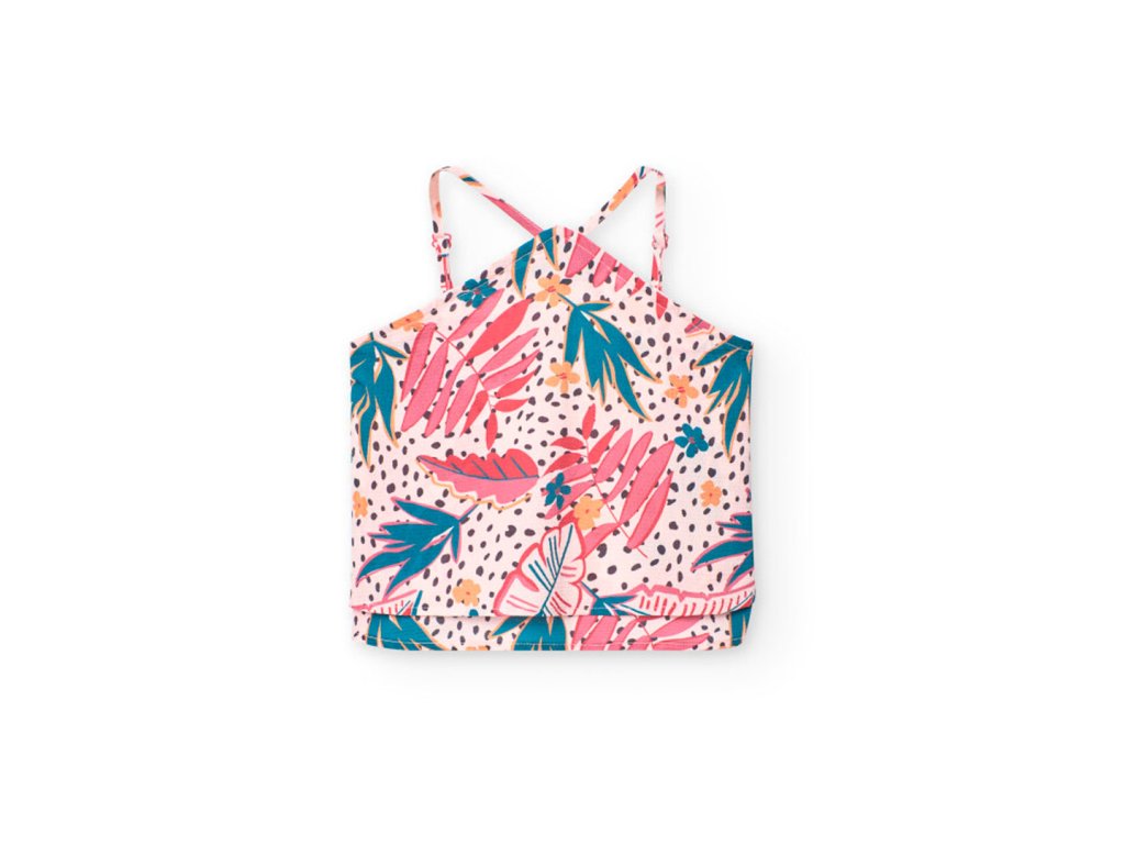 Módní tílko s květovanými vzory, široký střih. Nastavitelná ramínka, vpředu ke krku. Doporučujeme doplnit o zelené kraťasy ze stejné kolekce. Pro mladé slečny tak vytvoříte skvělý letní outfit.