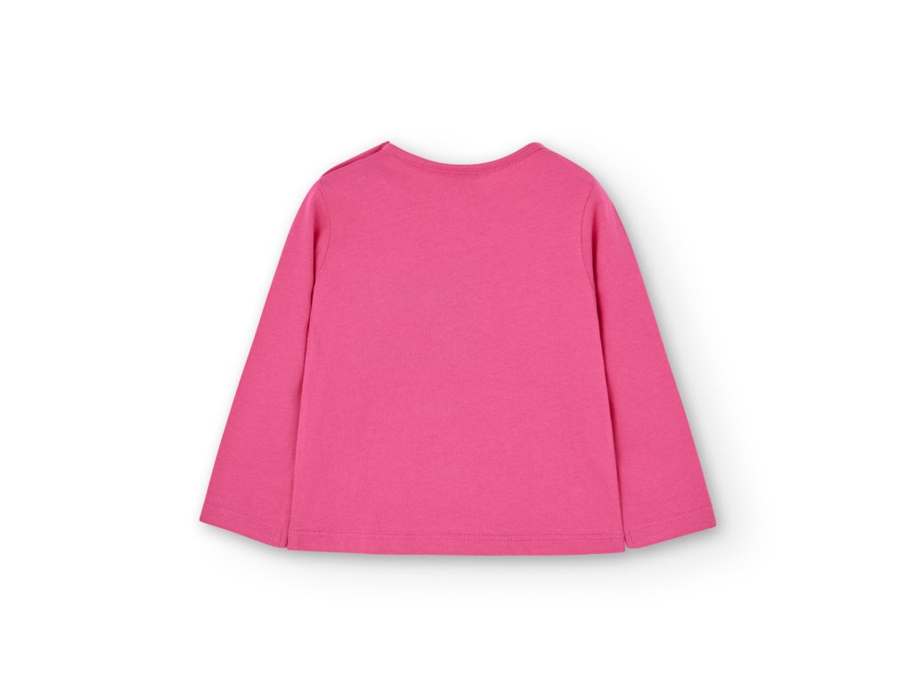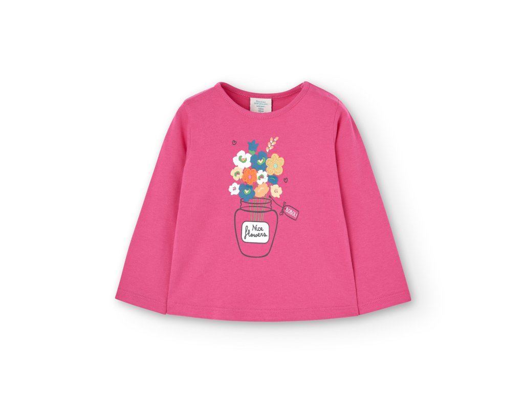Tričko s dlouhým rukávem, sytě růžové barvy, obrázek kytice.