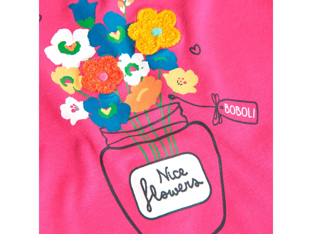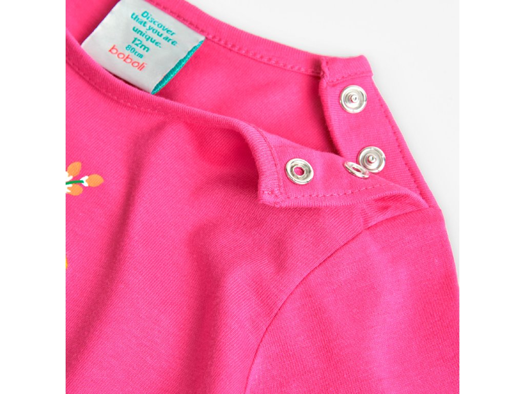 Tričko sytě růžové barvy, kytičky, dlouhý rukáv, Boboli